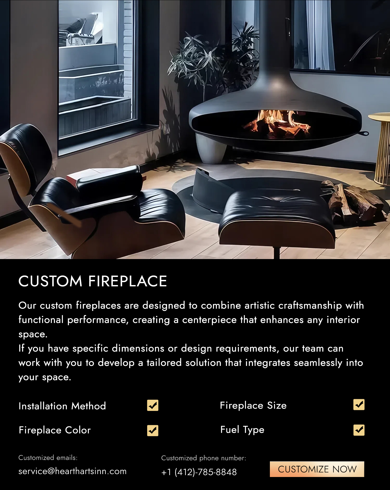 Once you receive your fireplace, please inspect the package for any damage and contact us if anything appears incorrect. Follow the installation manual carefully, or hire a qualified professional to ensure proper and safe installation. After setup, test the fireplace to confirm everything operates smoothly. If you have any questions, our support team is always happy to assist. 🔥